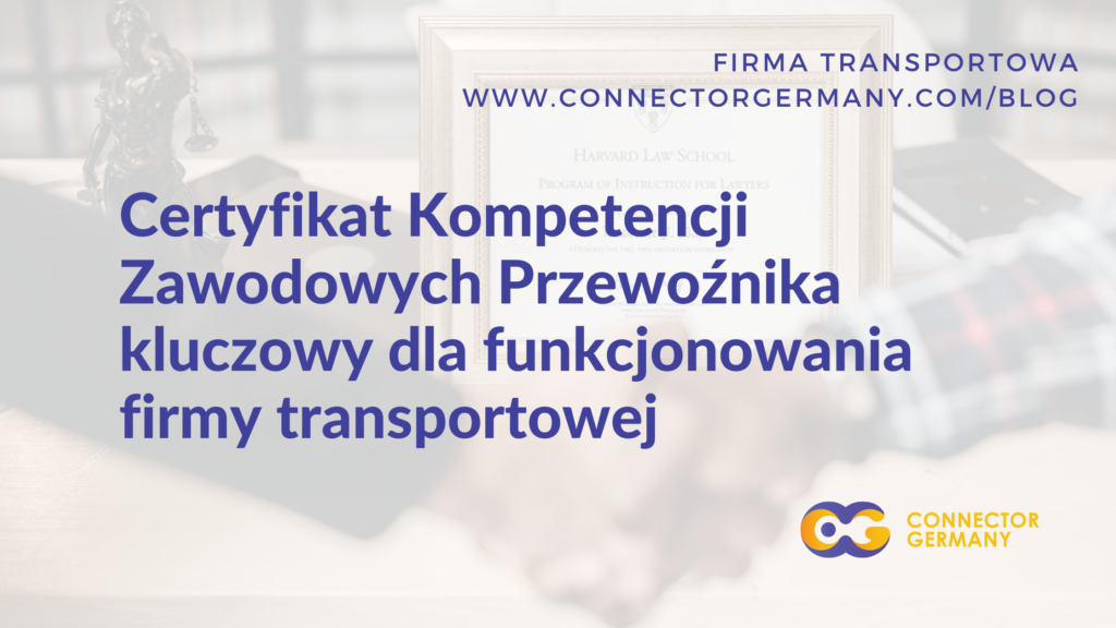 Przepisy dotyczące transportu drogowego mówią, że w każdej firmie transportowej przynajmniej jeden z członków zarządu lub osoba, która pełni funkcję kierownika transportu jest zobowiązana do posiadania Certyfikatu Kompetencji. Posiadanie tego dokumentu umożliwia wykonywanie zawodu przewoźnika drogowego, uzyskanie licencji spedycyjnej oraz otrzymanie potrzebnych zezwoleń na przewóz w kraju i za granicą.